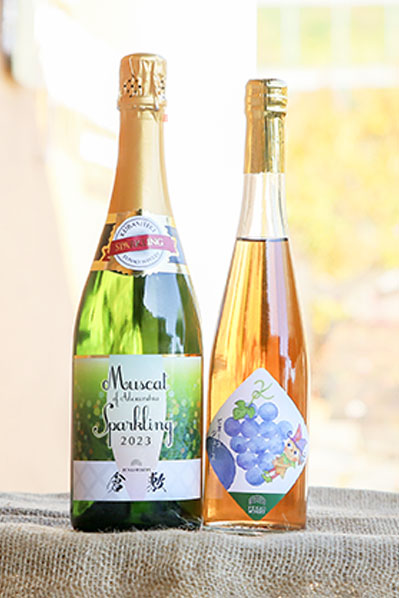 マスカット・オブ・アレキサンドリアスパークリングワイン、ピオーネジュース2本セット
